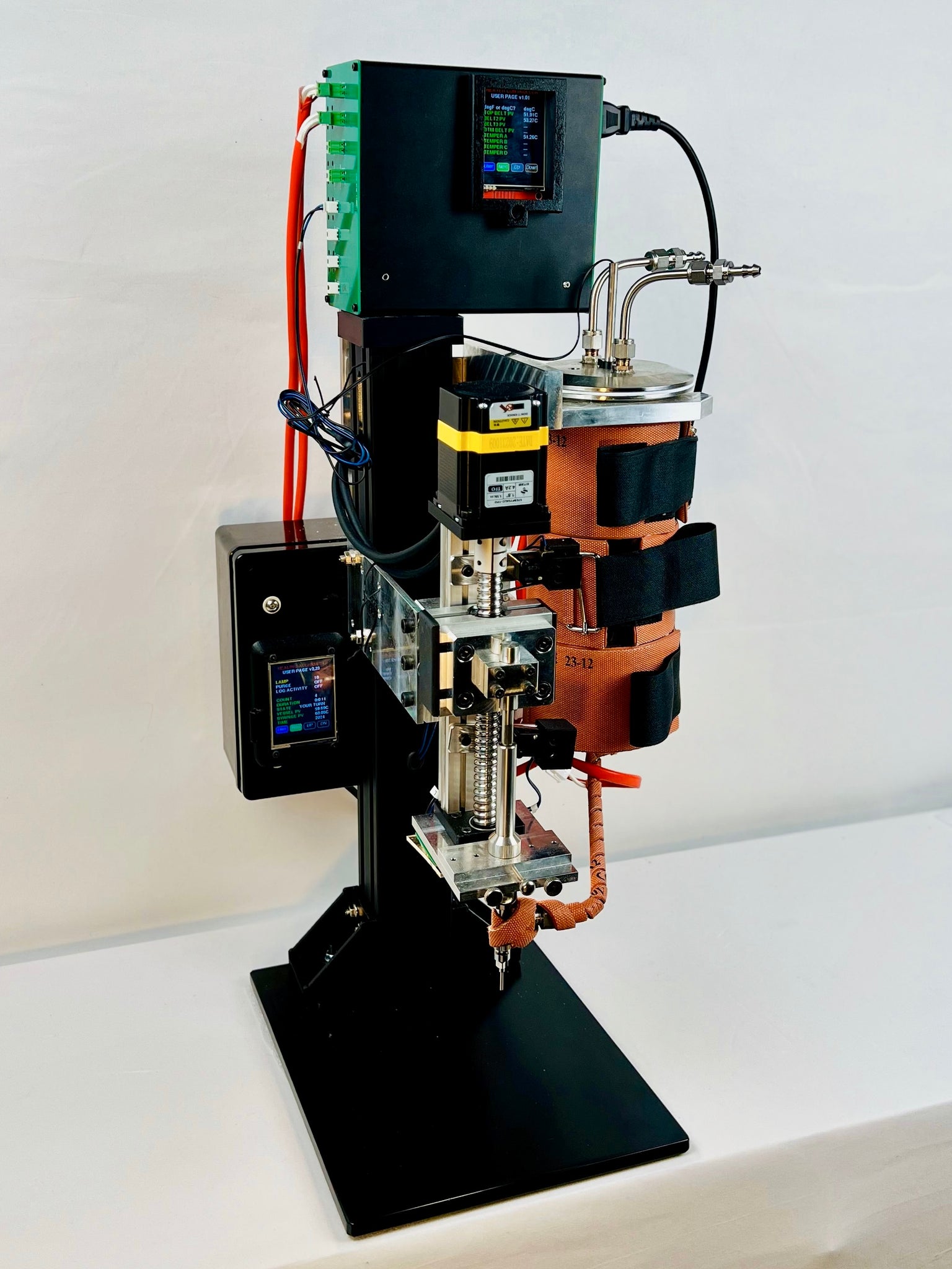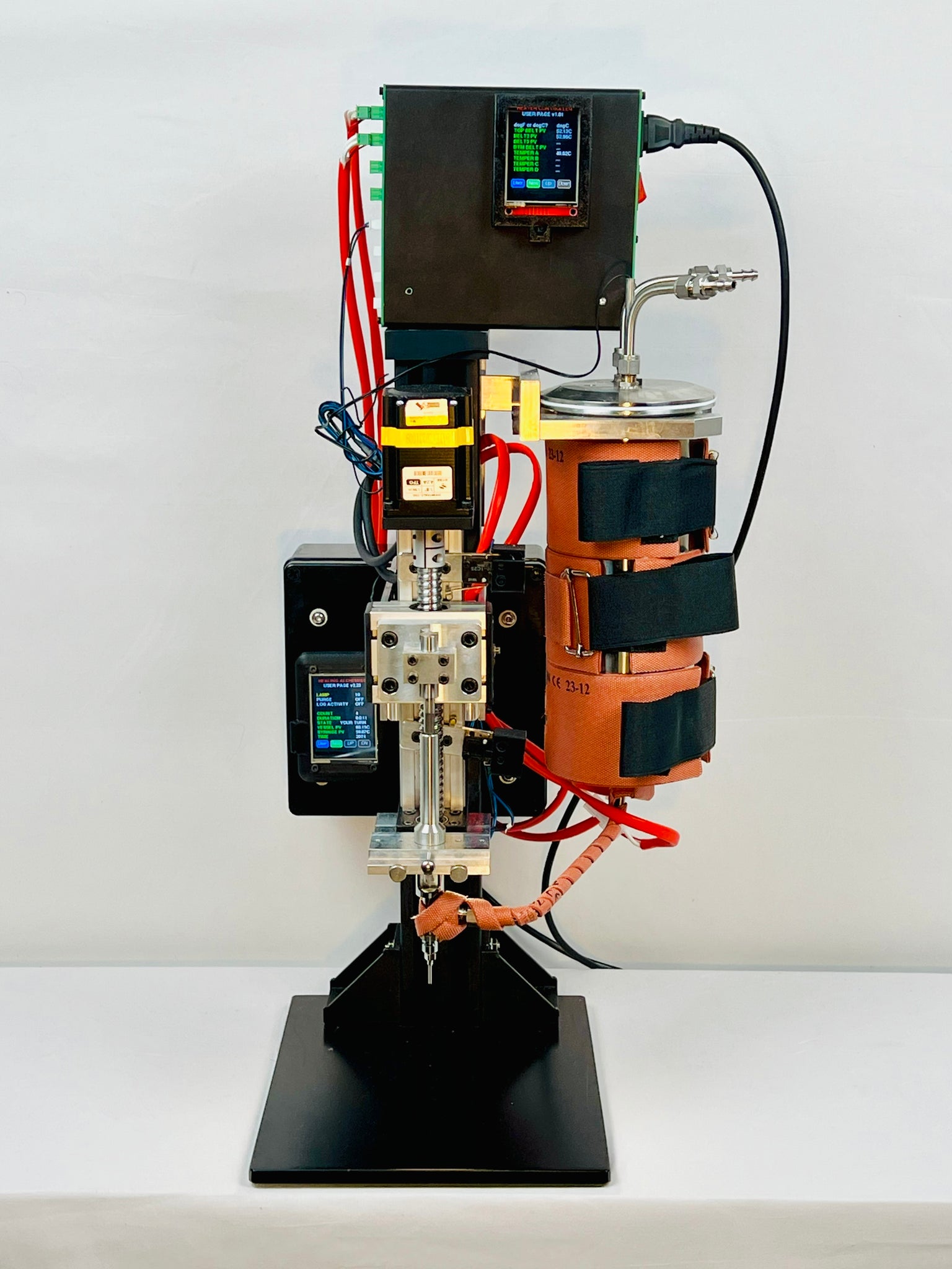 You asked, we listened – the Alchemist Filling Machine now supports a larger vessel! The Big Kahuna 2000mL Vessel with hardline tubing fits right into your Alchemist Filling Machine and uses three vessel heater belts. Swagelok® hardlines (instead of surgical tubing) reduce oxidation by backfilling vessel with nitrogen. Purchase includes 2000mL vessel, a stainless steel lid fitted for gas inlet and outlet, two belts, a separate controller, a precision stand, and Swagelok® hardlines. The vessel lid allows for vacuum evacuation and/or backfill with nitrogen.